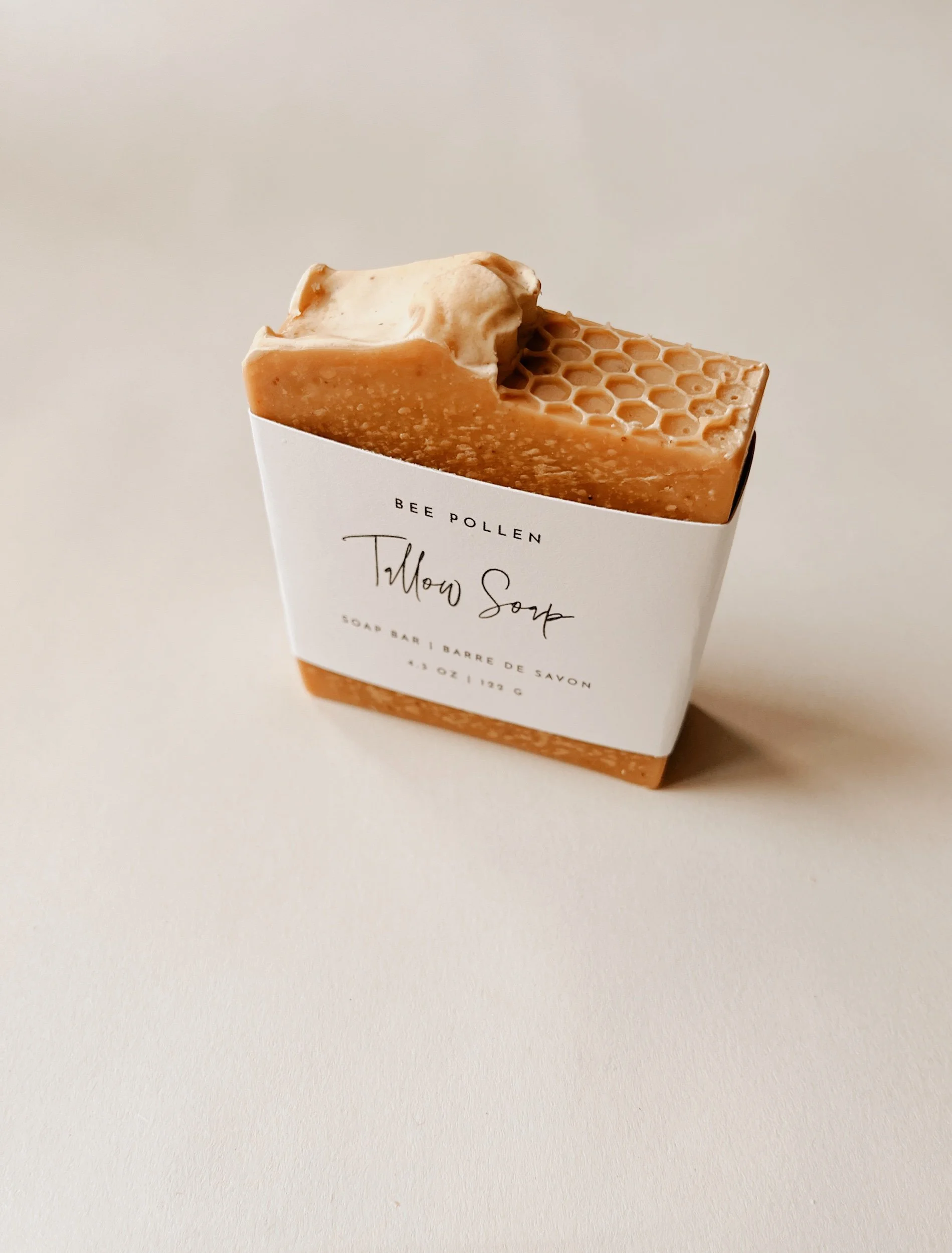 Handcrafted with nutrient-rich beef tallow, this bar delivers a creamy, long-lasting lather that deeply nourishes and protects the skin. Infused with pure lavender essential oil and a touch of honey fragrance, it offers a soft, floral sweetness balanced by the warmth of natural honey and bee pollen.