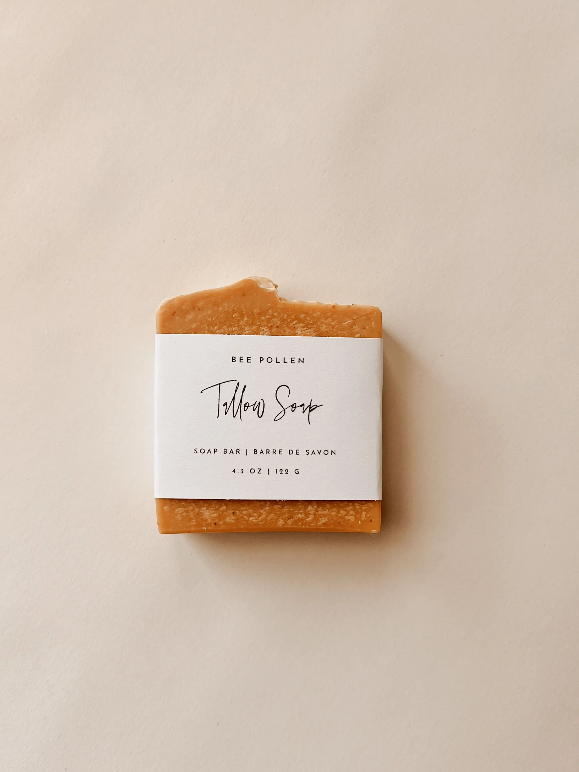 Full Ingredients: saponified beef tallow, bee pollen, kaolin clay, local honey, lavender essential oil, fragrance, annatto powder