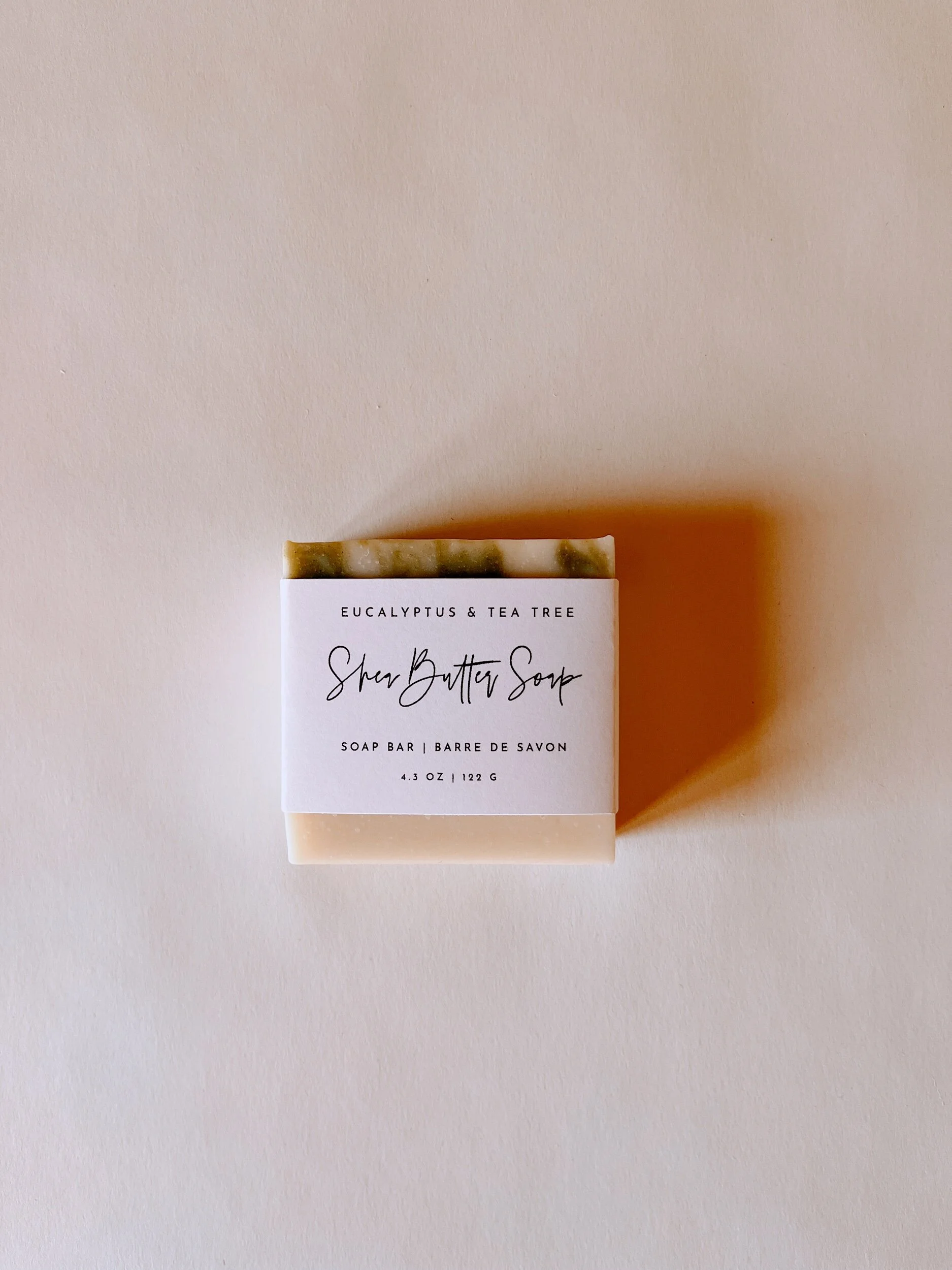 A handcrafted Shea butter soap with refreshing eucalyptus and herbaceous tea tree.